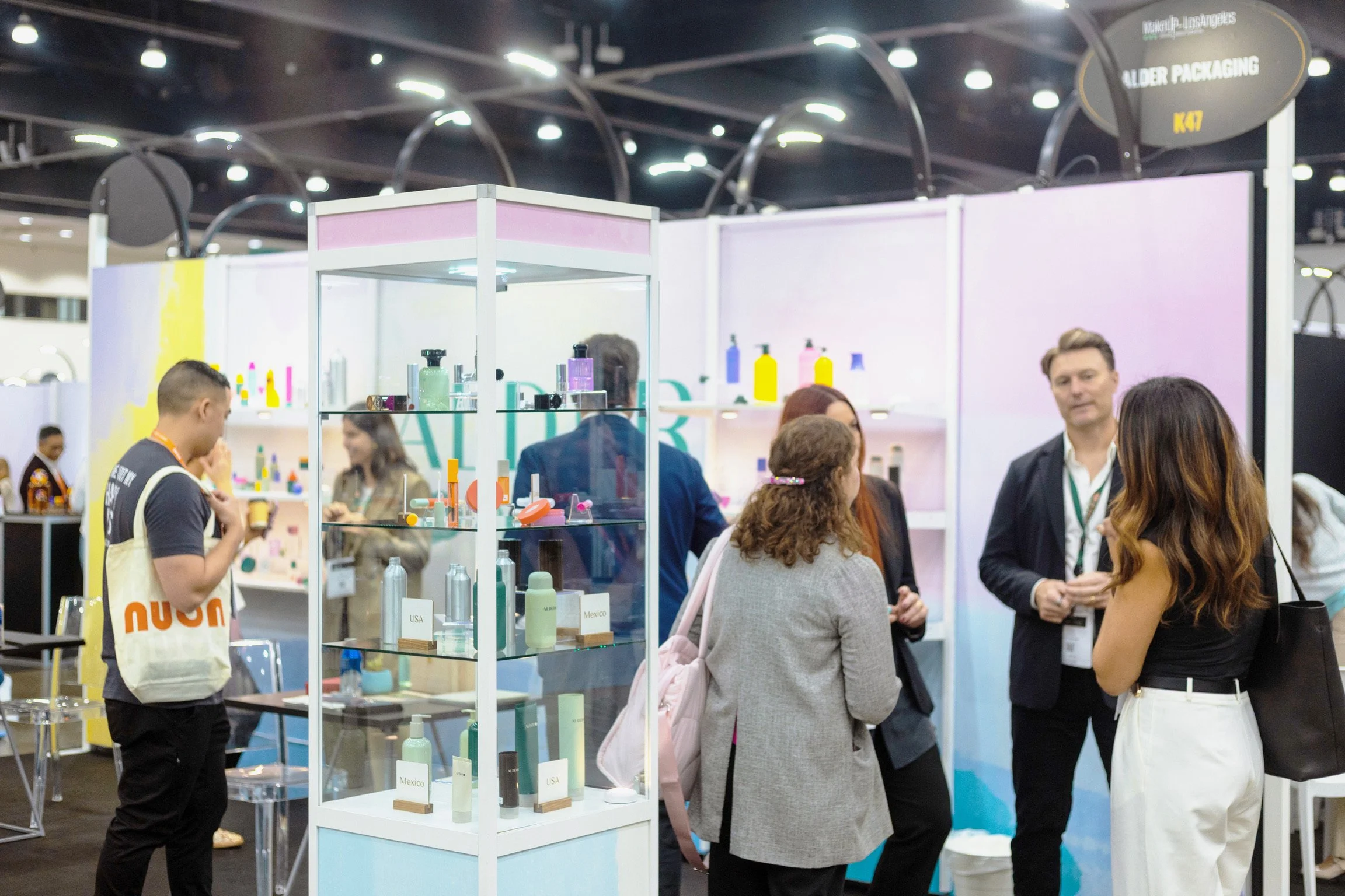 For Alder Packaging’s exhibit at MULA, we emphasized regionalization by organizing our packaging components with clear location markers. This level of transparency empowered beauty brands to discuss their current supply chain strategies.